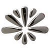 Large teardrop: 30mm long and 10mm wide at widest