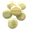 Each droplet is unique and handcrafted, resulting in variations in color, shape, and size. Their diameter ranges from 30 to 38 mm, with an average thickness of about 12 mm. Because they are handmade, they are not perfectly round, which adds to their charm and organic appearance.